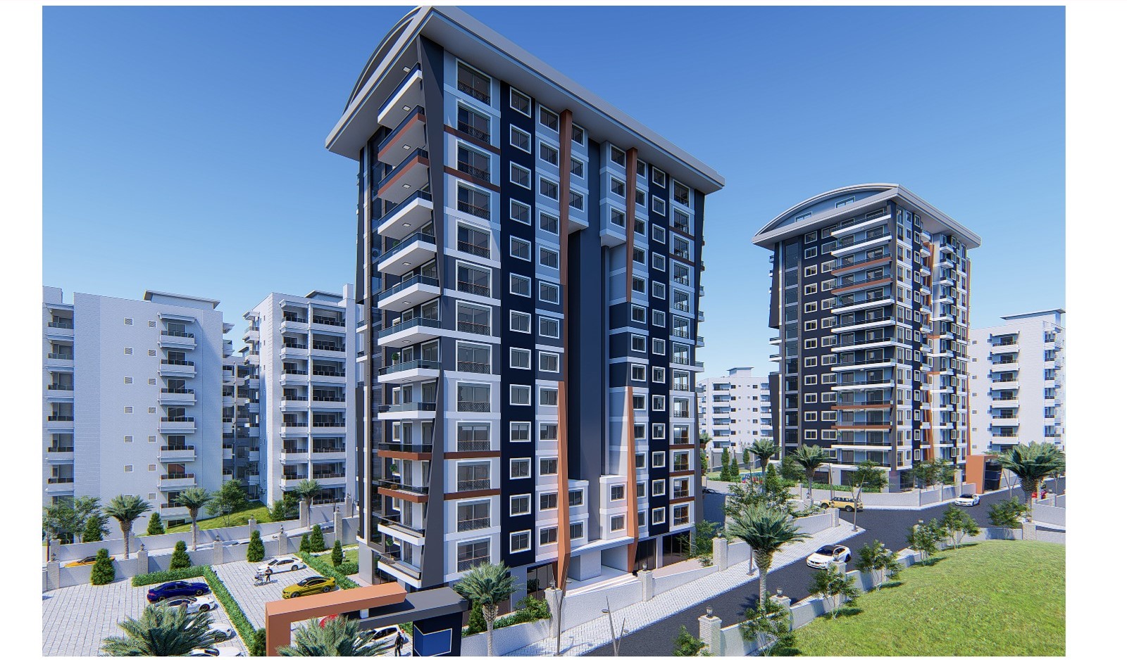 انواع مختلف آپارتمان های بزرگ با دو اتاق ، سه و چهار اتاق خواب. استخر در فضای باز ،سالن ورزشی ، جکوزی و زمین بازی کودکان. 7/24 ،دوربین مدار بسته.