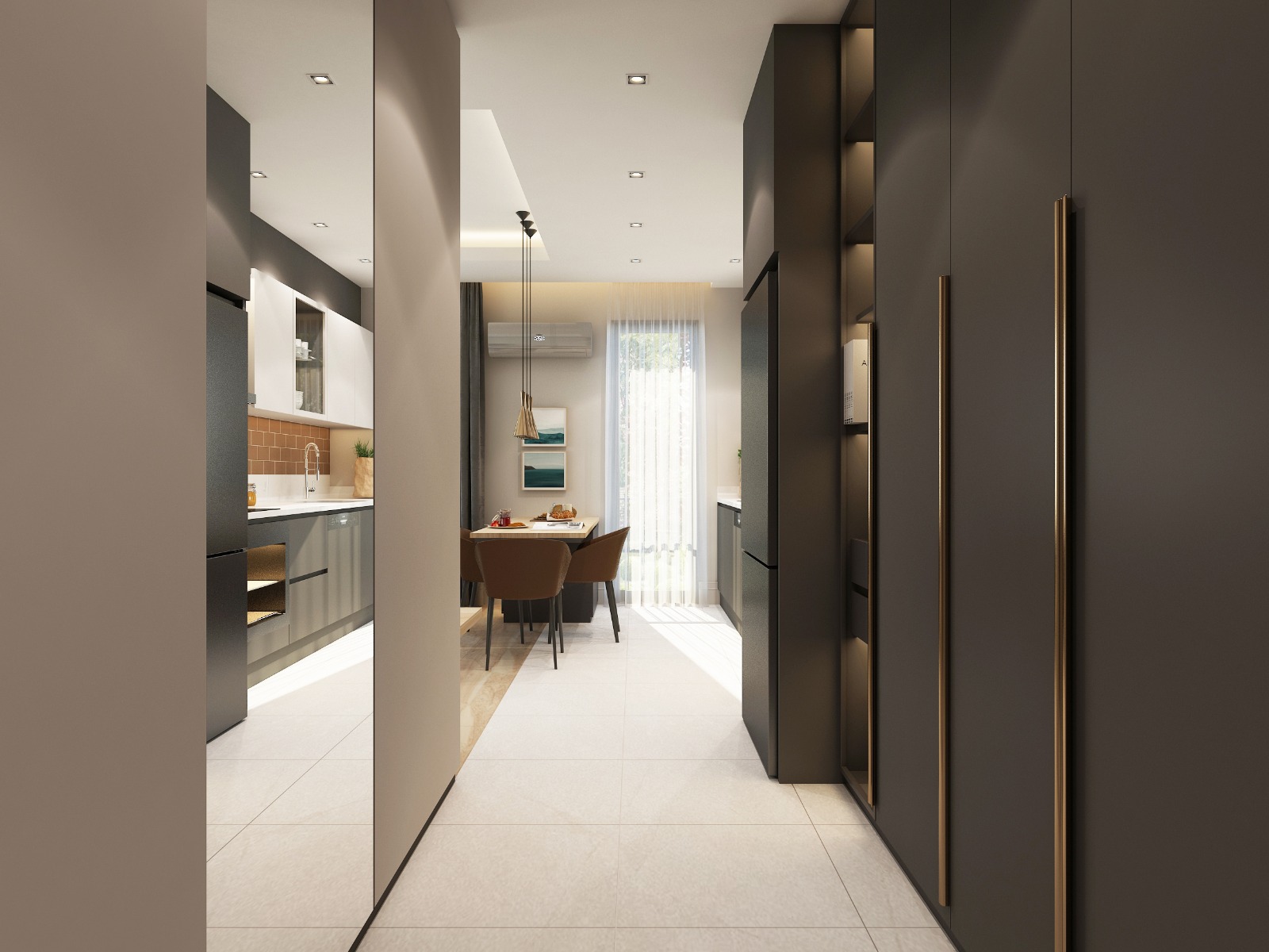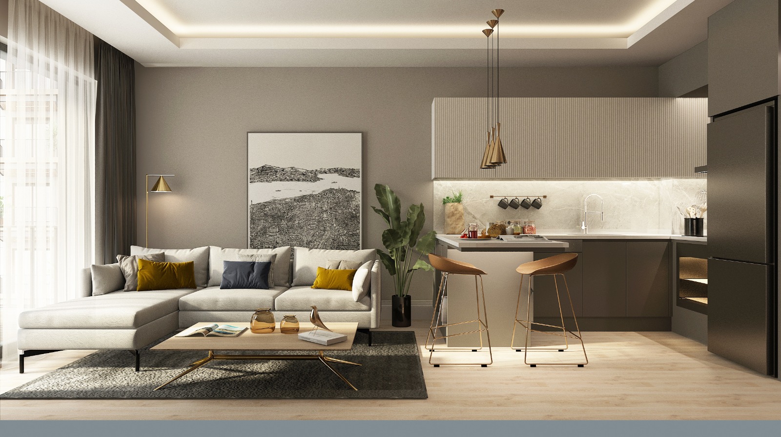 - آشپزخانه باز با مبلمان تعبیه شده