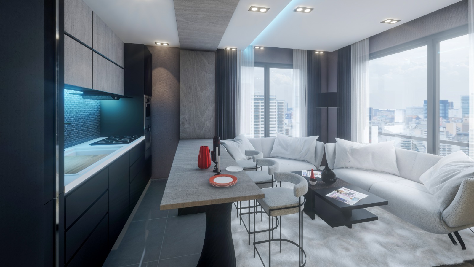 - سقف ها با اسپت و ال ای دی تزئین شده است