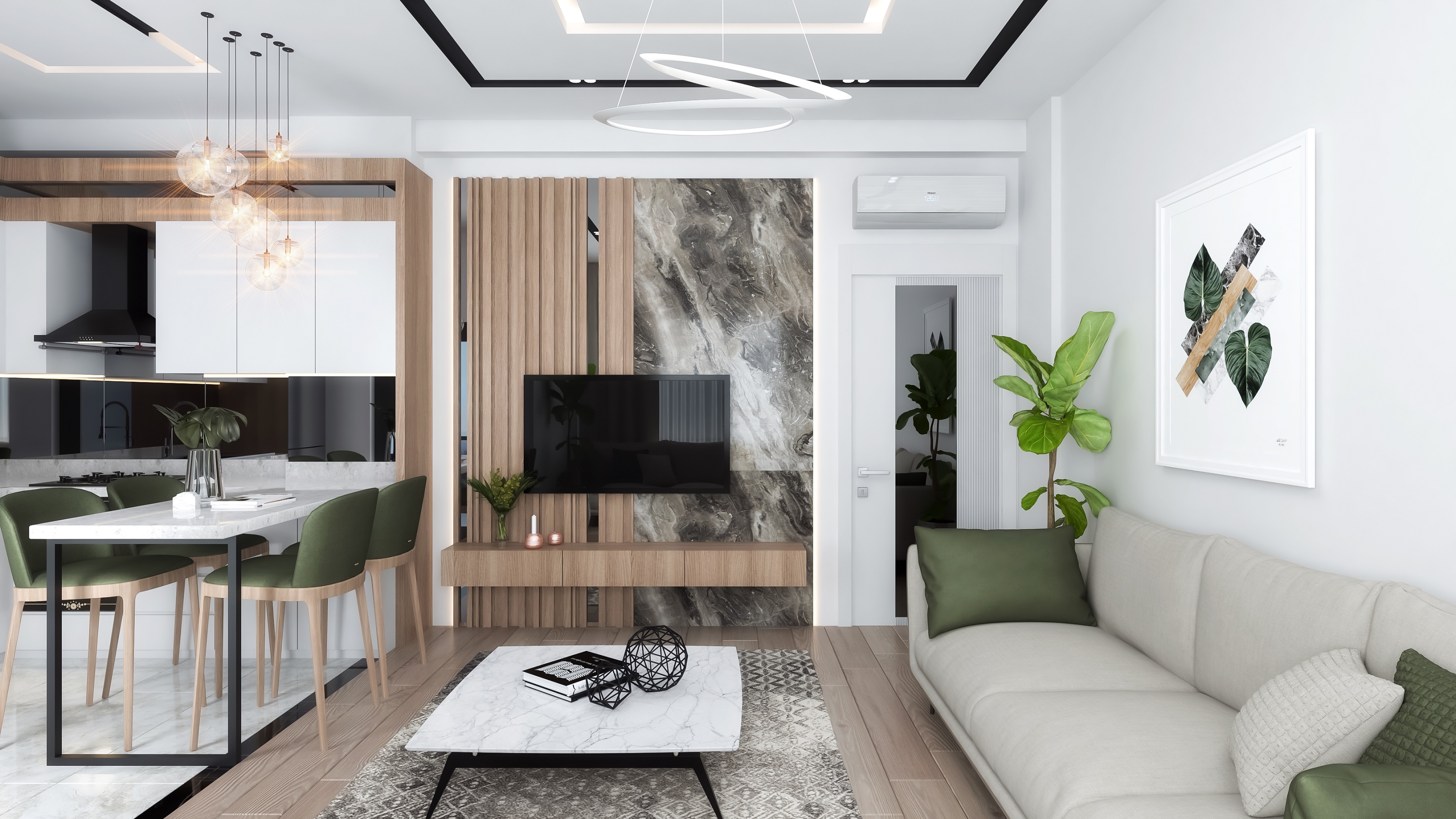- کف از سرامیک و پارکت کیفیت بالا ساخته شده