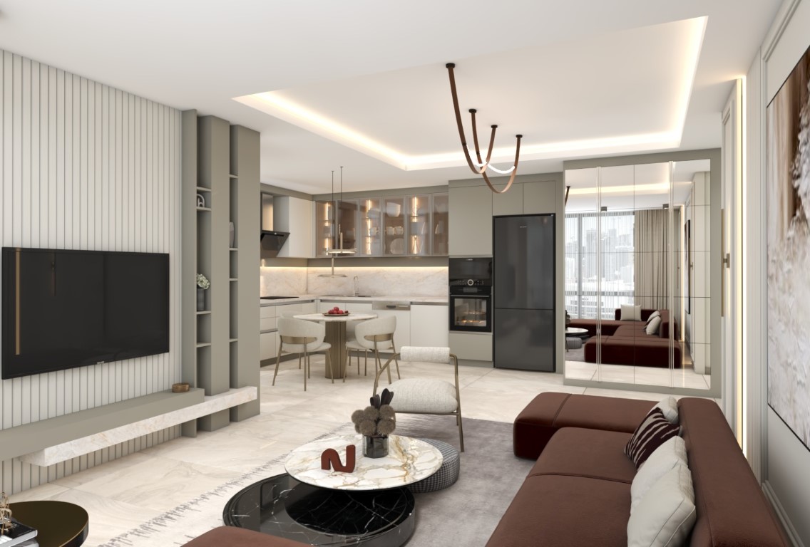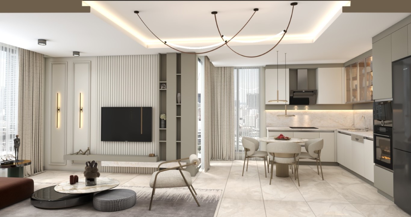 پیش پرداخت اولیه 50٪، تاکسید تا پایان ساخت و ساز. آشپزخانه از نوع آمریکایی. مجموعه ای از لوازم خانگی: اجاق گاز، هود و فر.