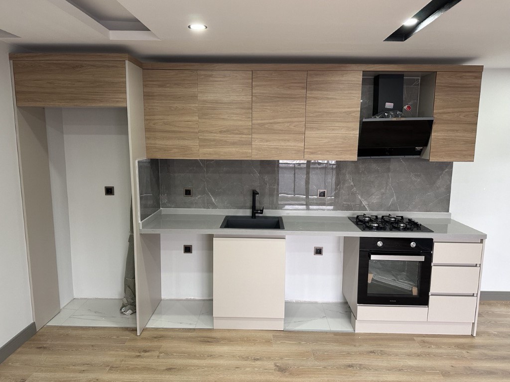 آشپزخانه باز، گاز تا درب. ساخت و ساز با کیفیت بالا و دکوراسیون داخلی. نزدیک به مرکز خرید "özdilek park".
