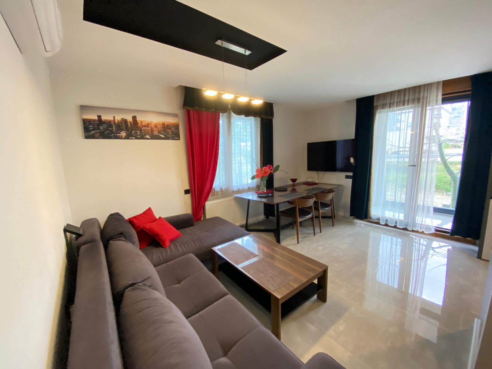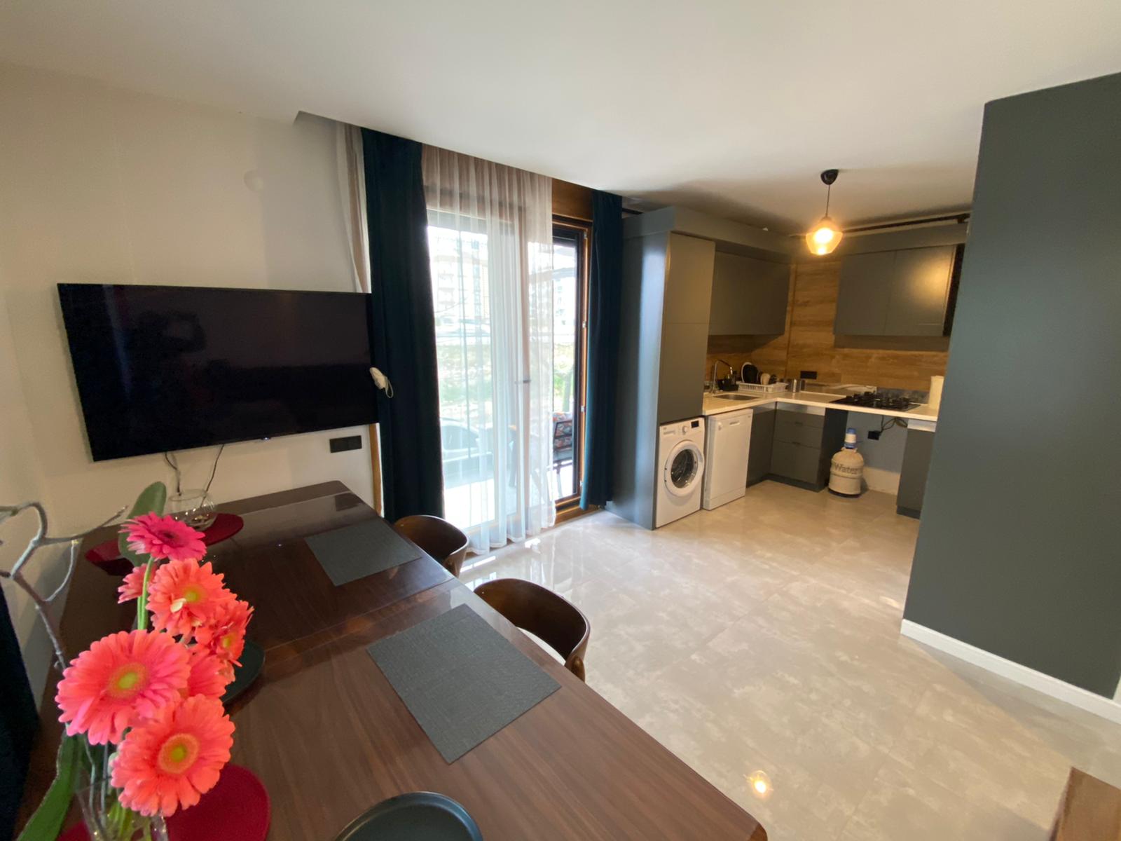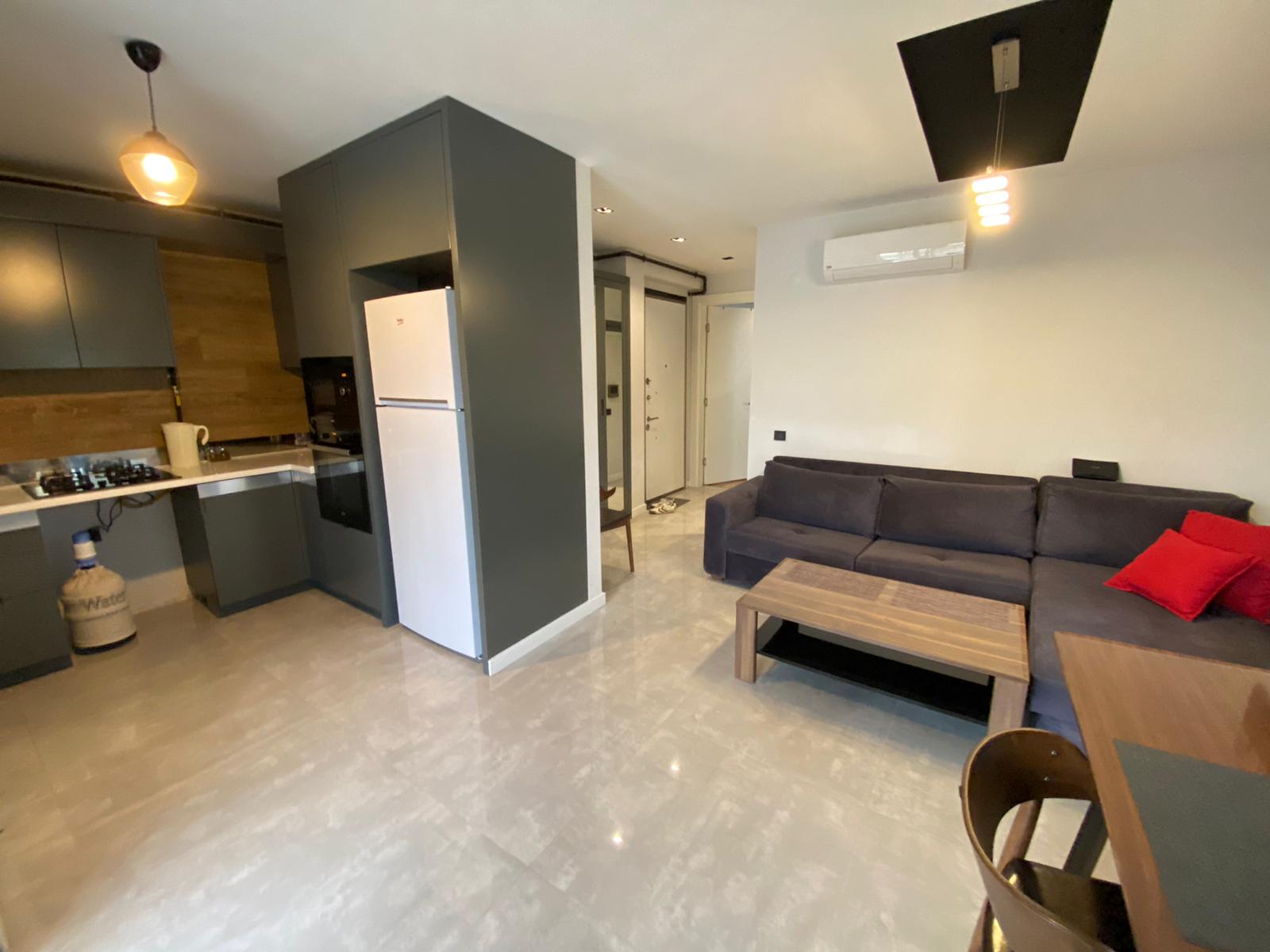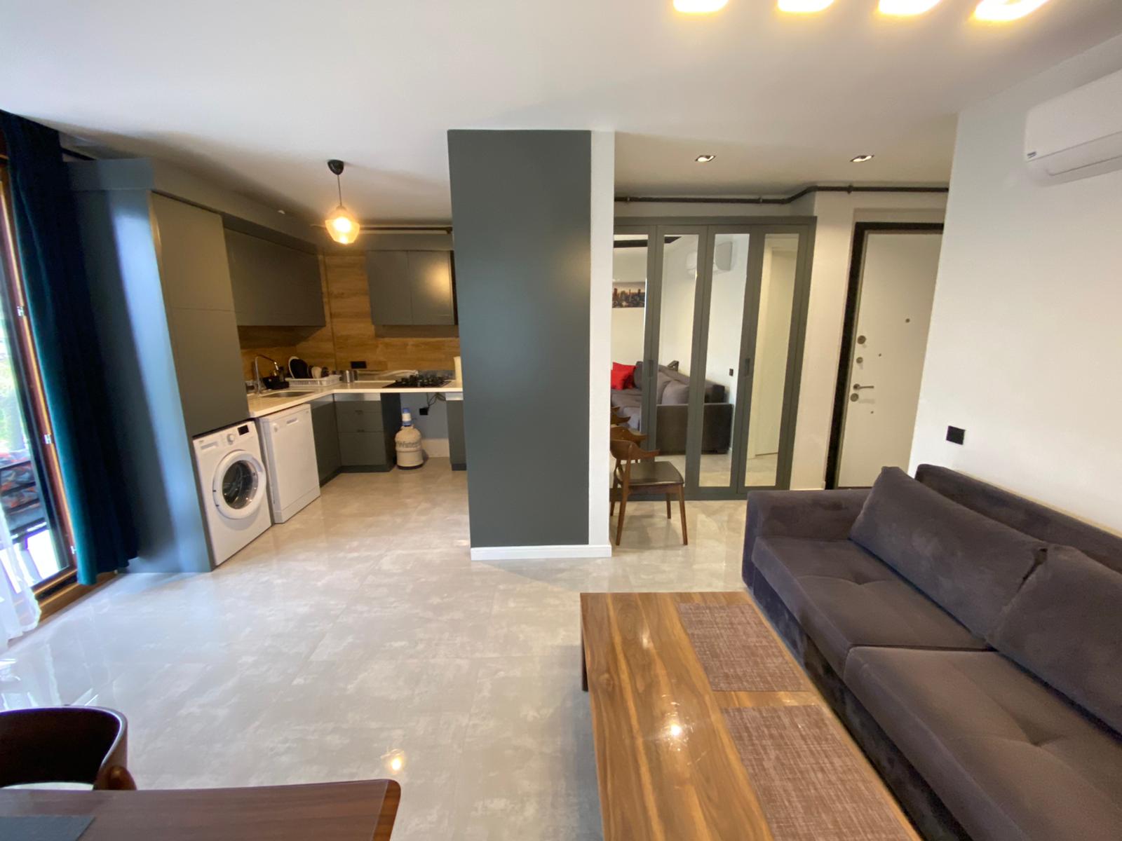 مجموعه کامل مبلمان و وسایل خانگی. آشپزخانه باز، تهویه مطبوع نصب شده است. بالکن شیشه‌ای.