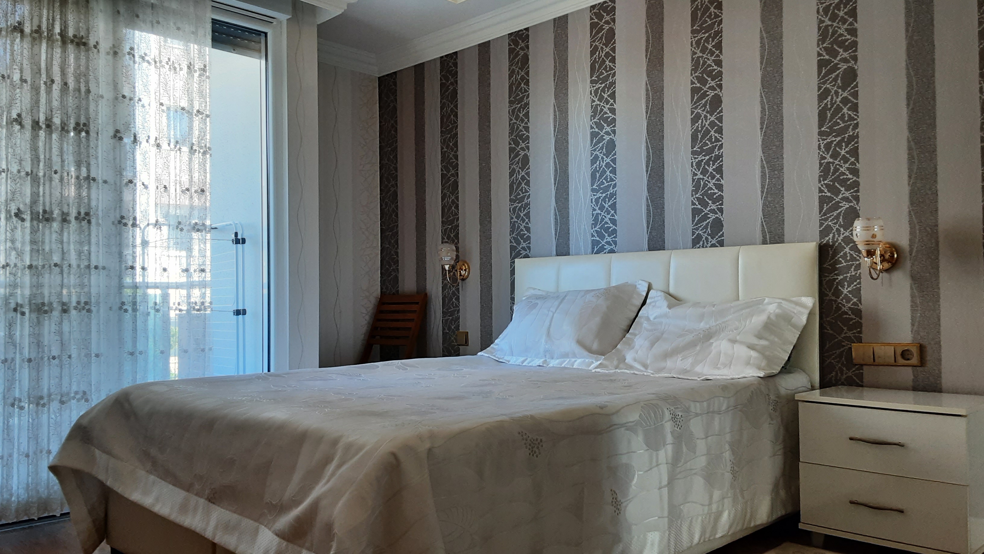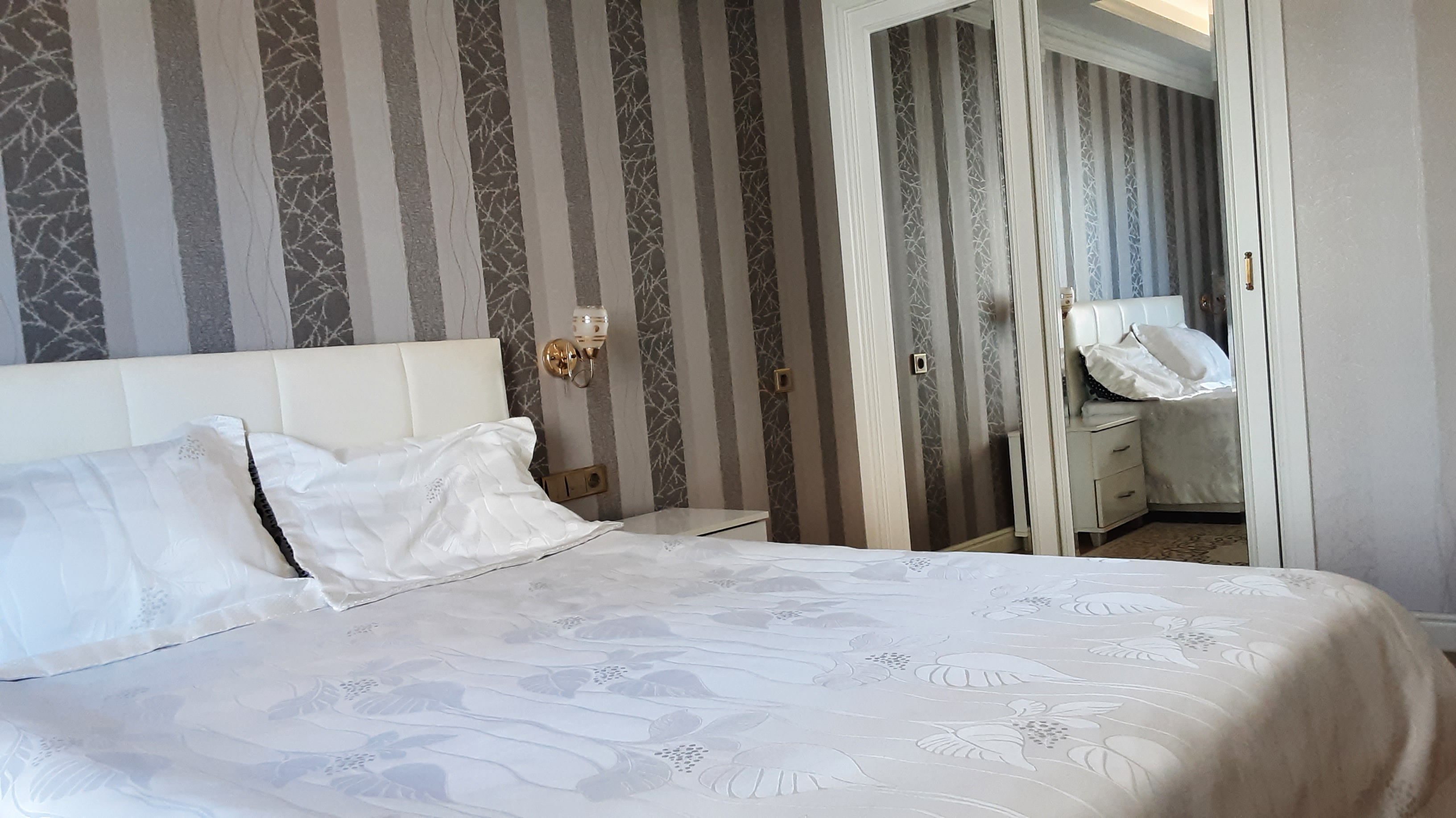 • دیوارها با کاغذ دیواری پوشانده شده اند