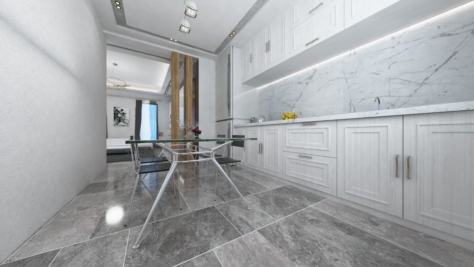 - آشپزخانه با مبلمان داخلی با کیفیت بالا