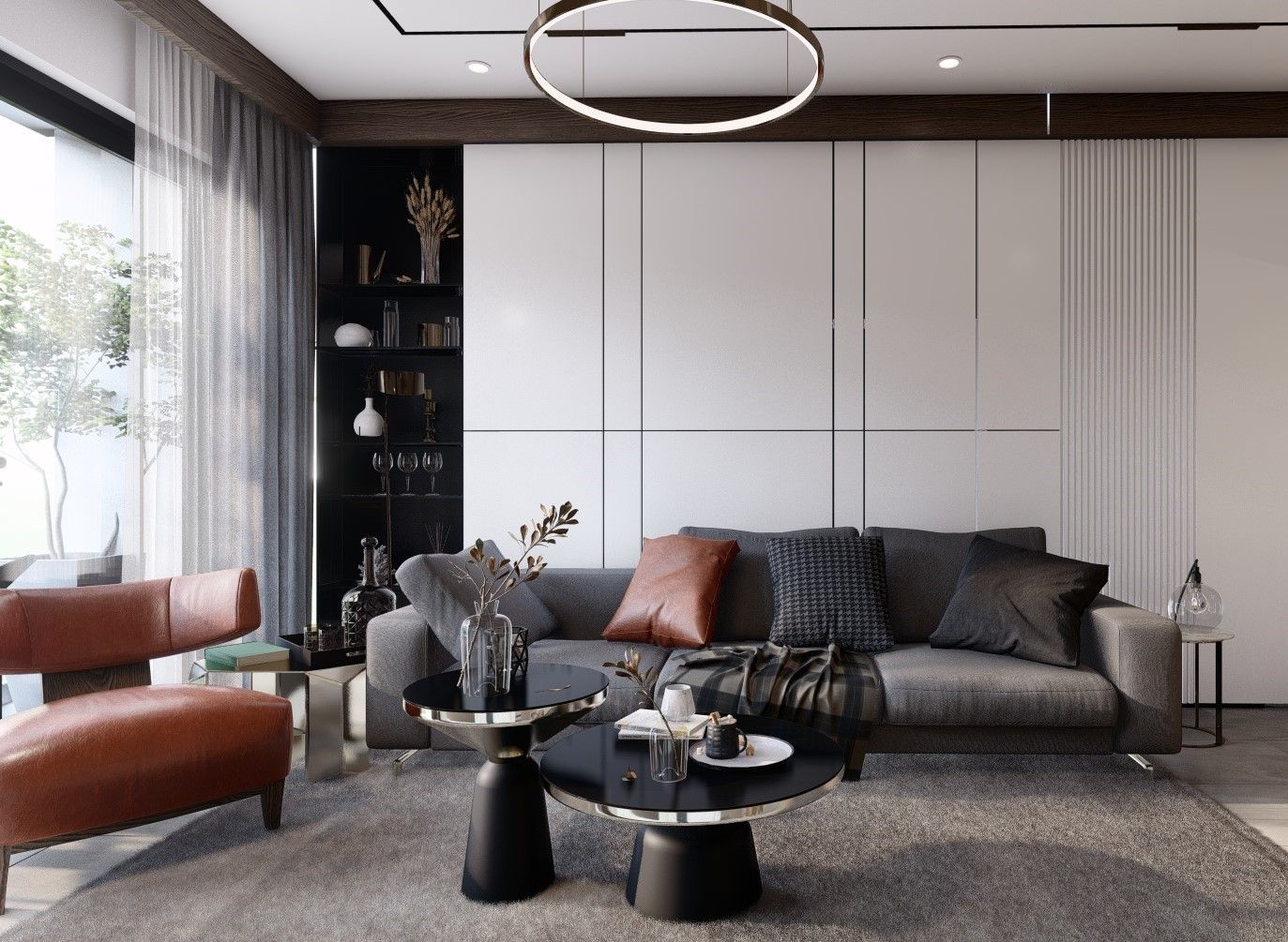 • آشپزخانه باز با مبلمان ساخته شده با کیفیت بالا