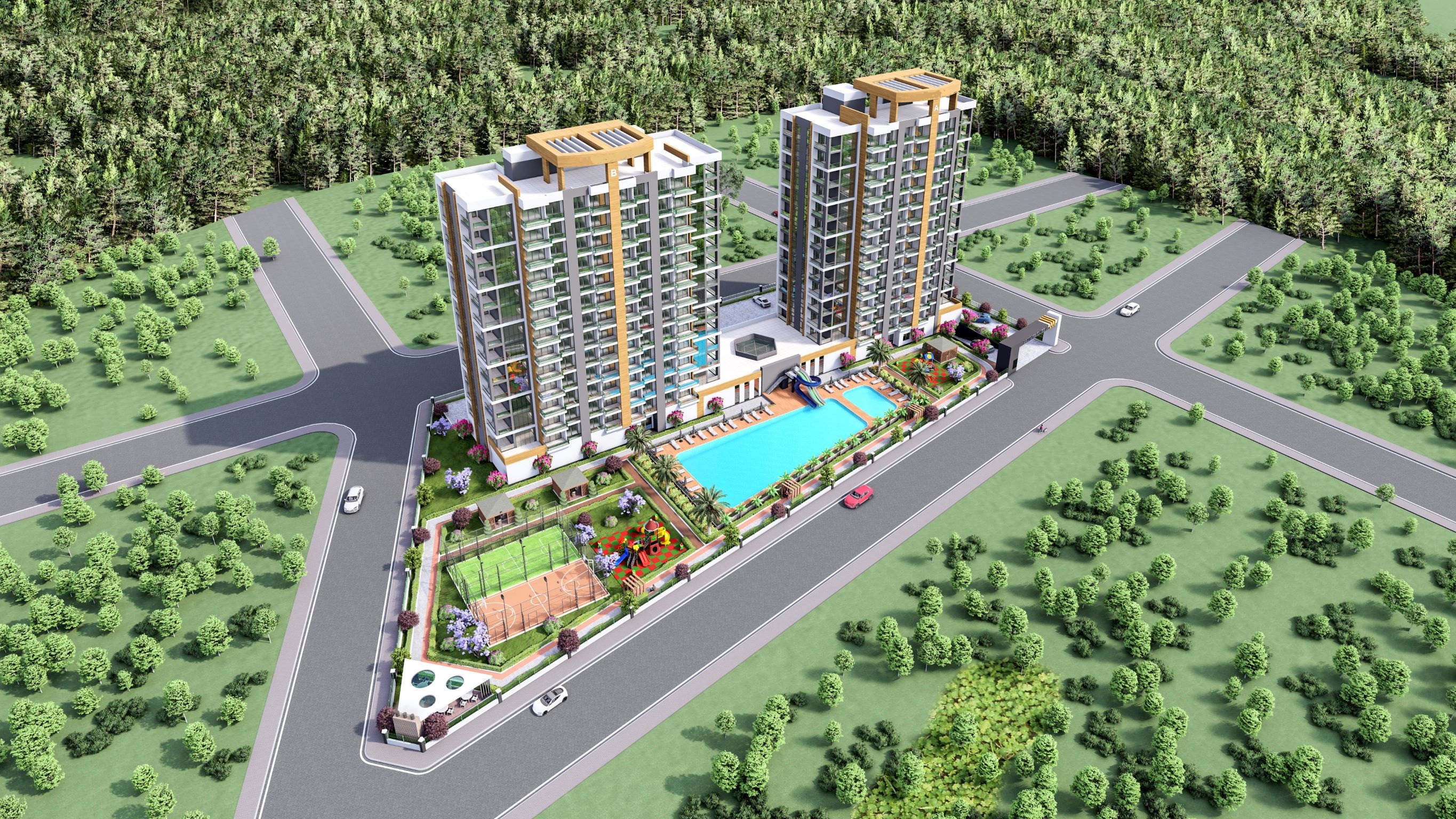 استخرهای باز و سرپوشیده، آبگرم، باشگاه بدنسازی، حمام ترکی، سونا، زمین بازی کودکان. پارکینگ هوایی و زیرزمین. برای شهروندی.