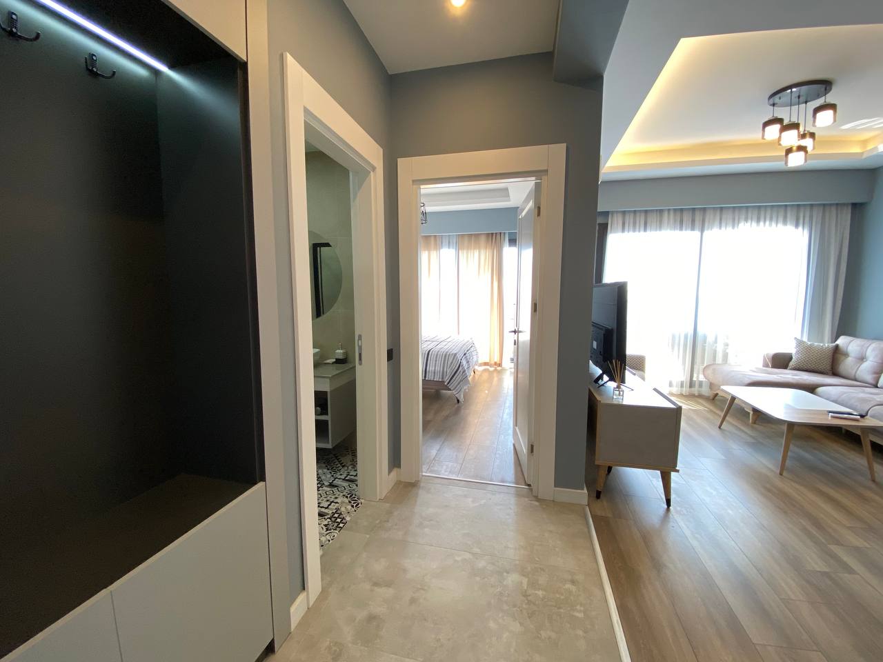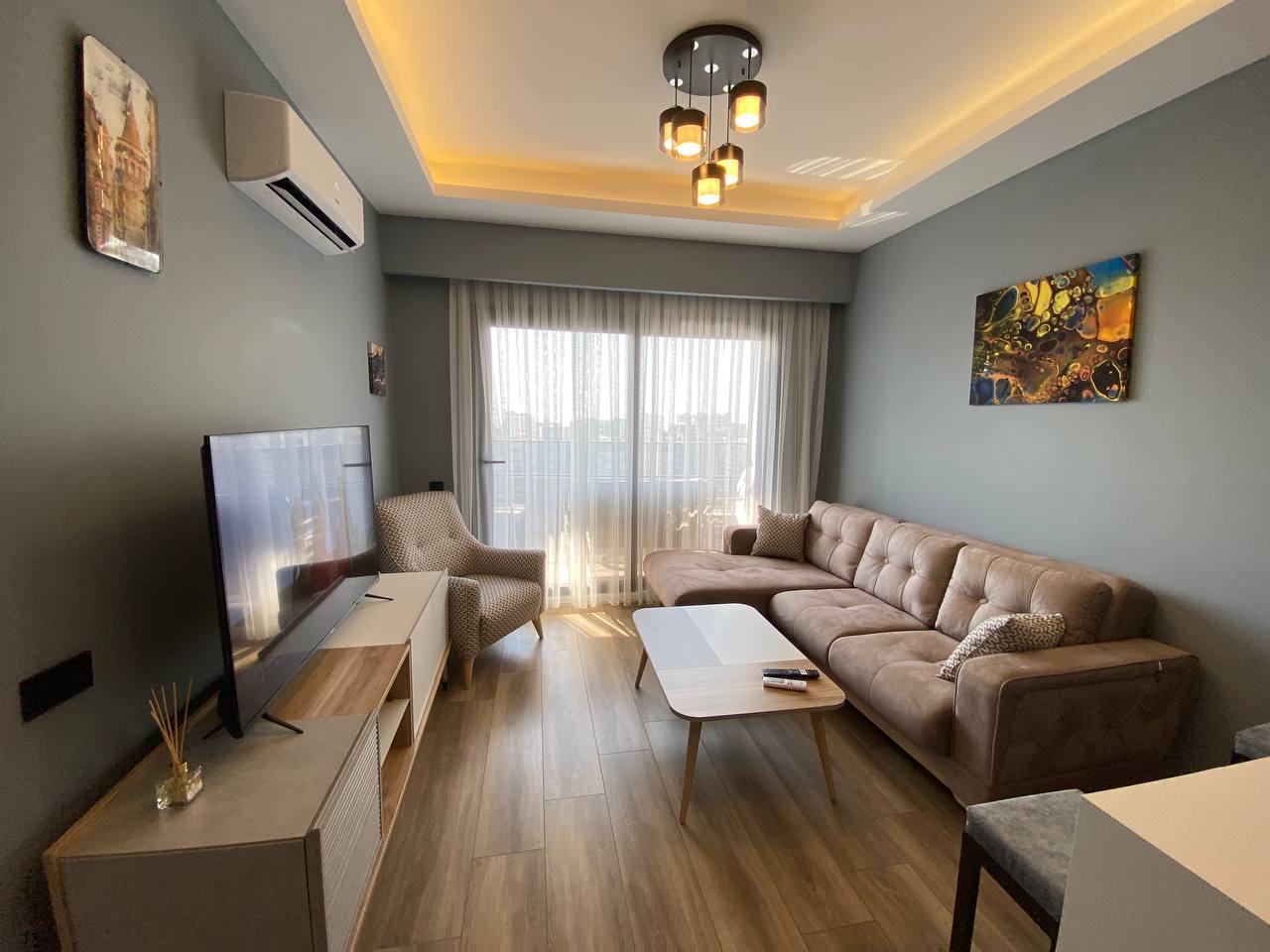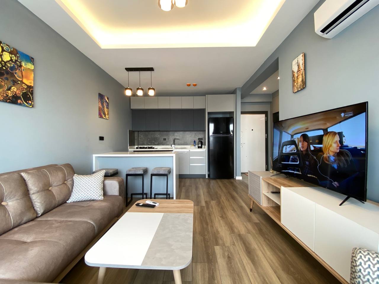 • کف از سرامیک و پارکت کیفیت بالا ساخته شده