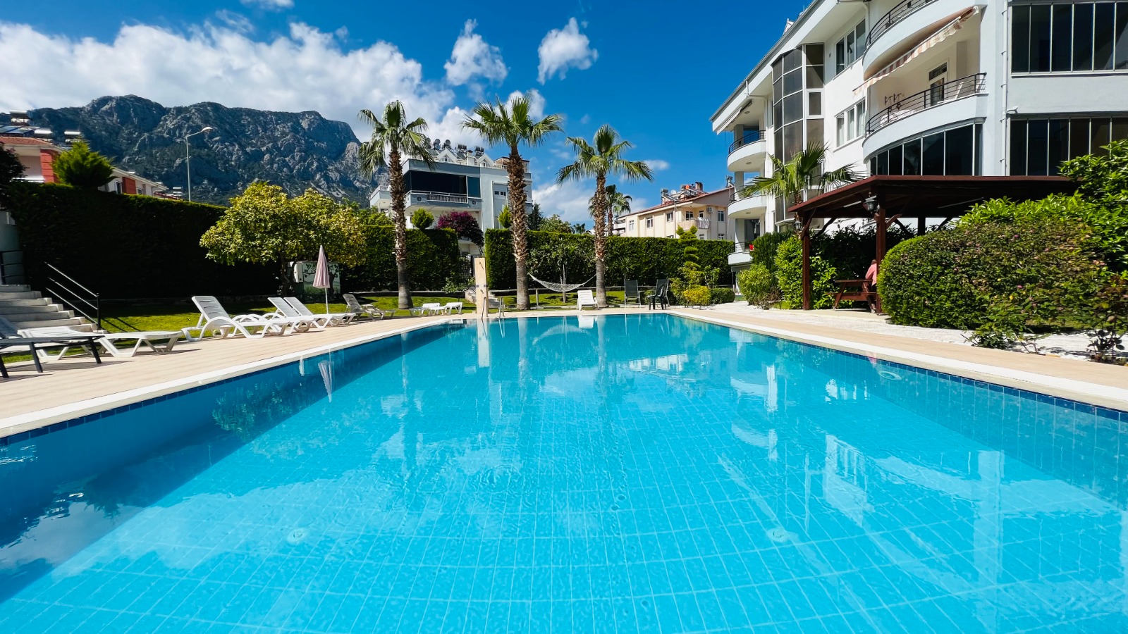 استخر آزاد، سایبان‌ها. مجموعه کامل مبلمان و وسایل خانگی. آشپزخانه باز، کولر نصب شده است.