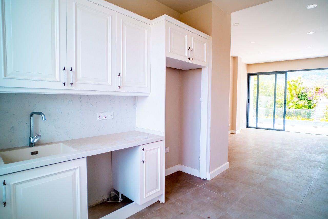 - آشپزخانه باز با وسایل آشپزخانه از پیش ساخته شده