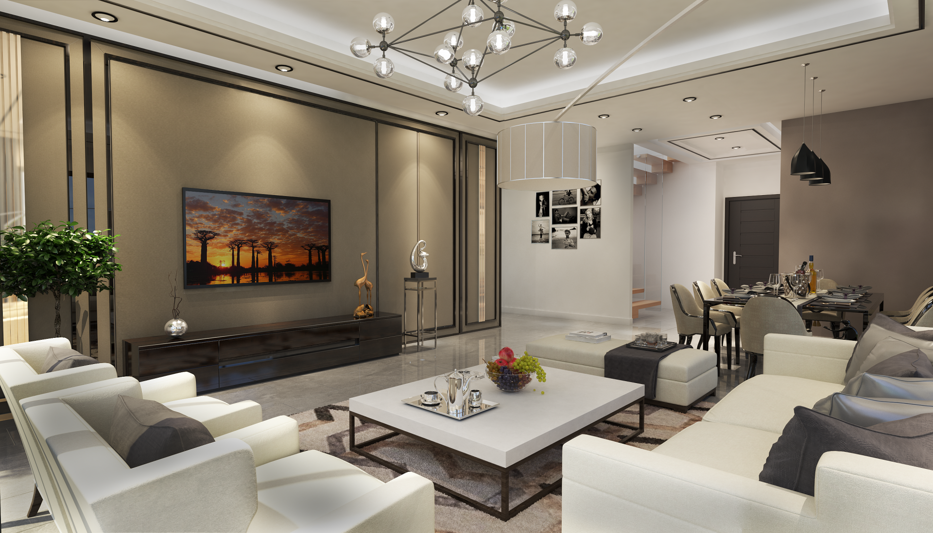 - آشپزخانه اوپن با مبلمان توکار
