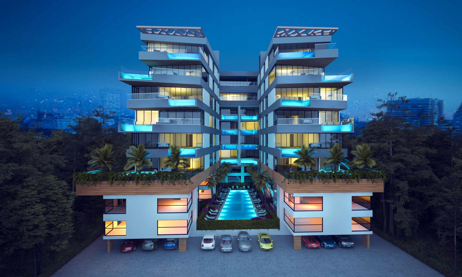استخر خصوصی در بالکن. سیستم تهویه مطبوع مرکزی. پارکینگ در فضای باز.