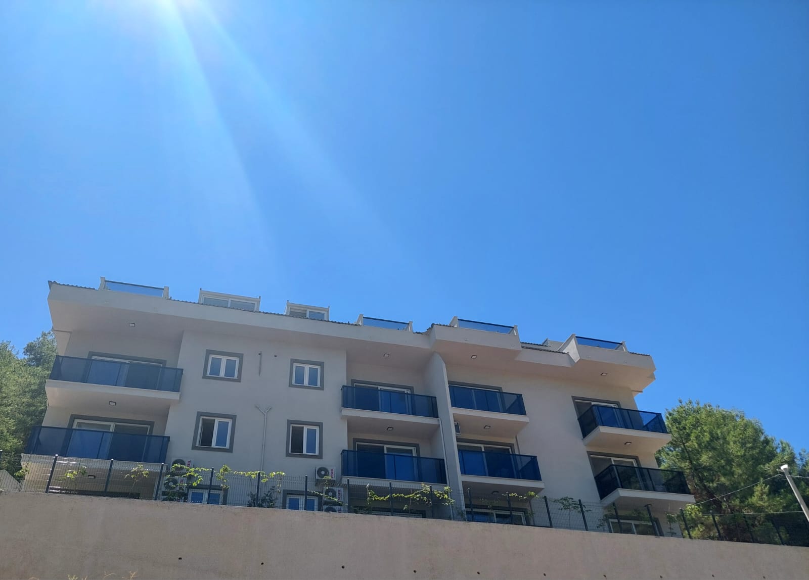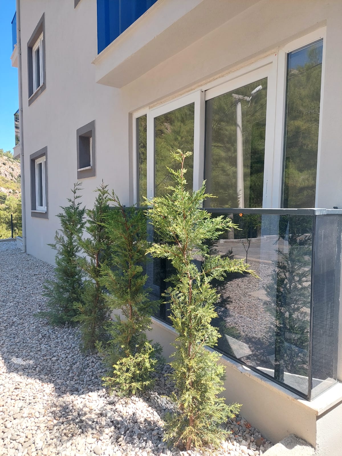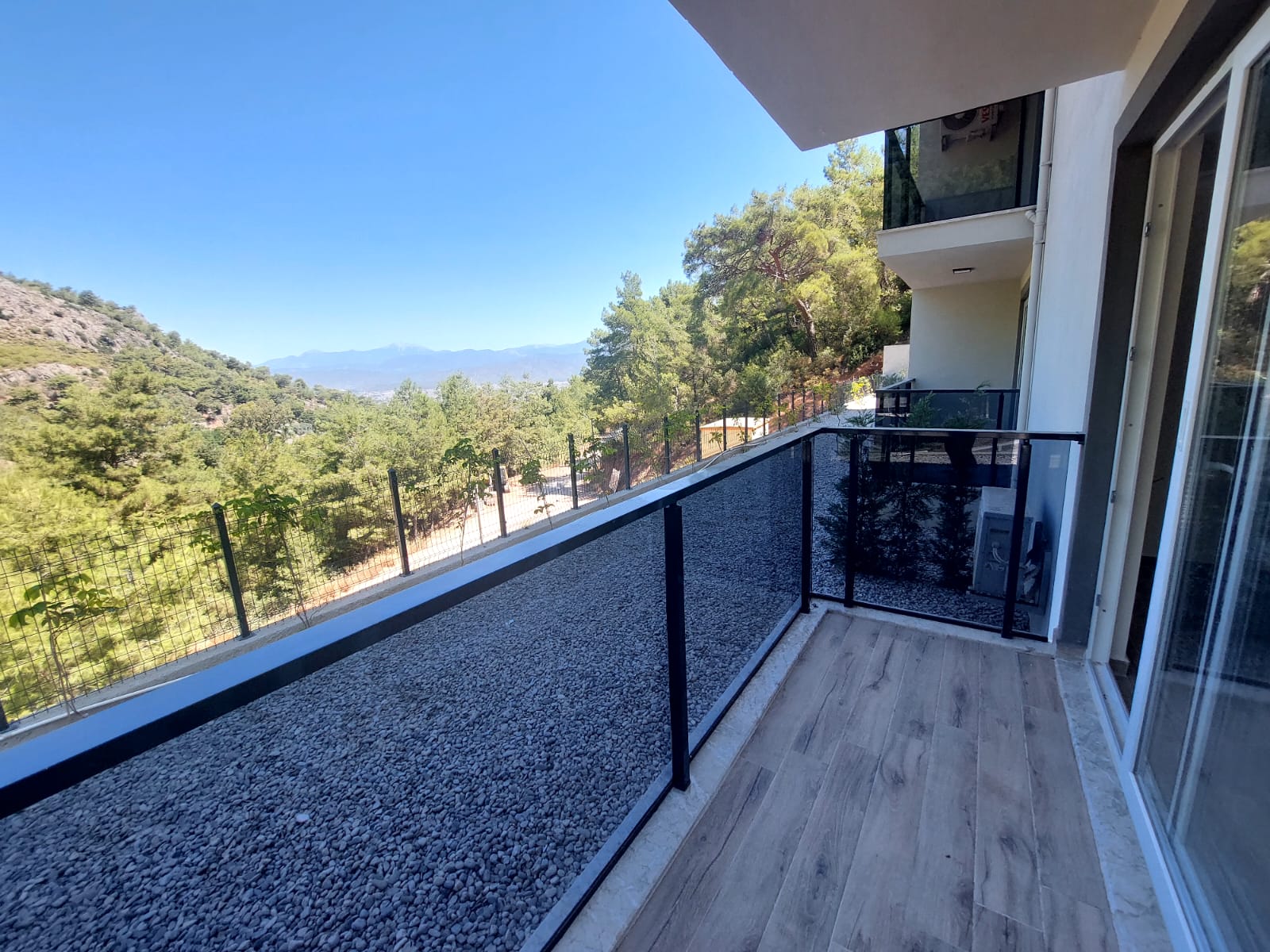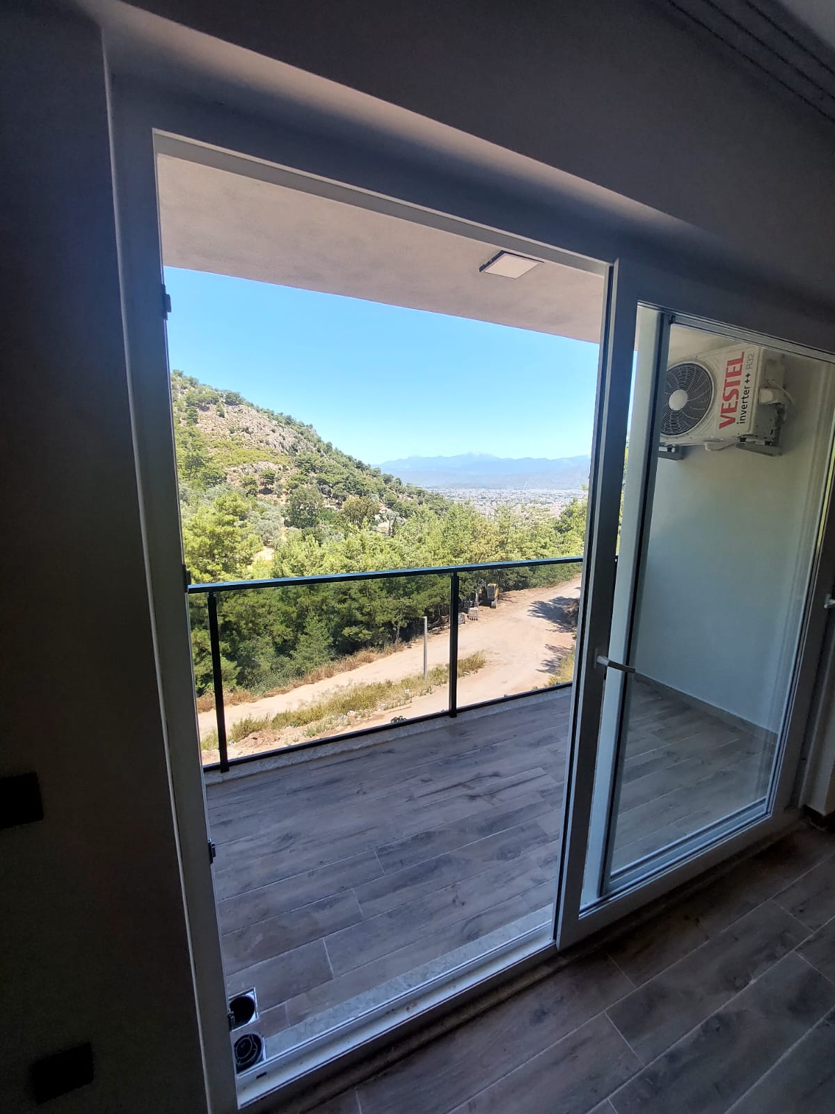 کولر نصب شده است. آشپزخانه باز. منظره باز به کوه ها، جنگل های صنوبری و شهر.