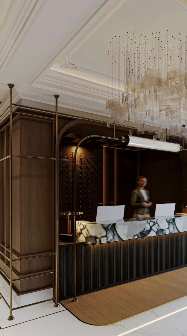 - راه پله ها و پله ها پوششیده شده با سنگ مرمر و گرانیت