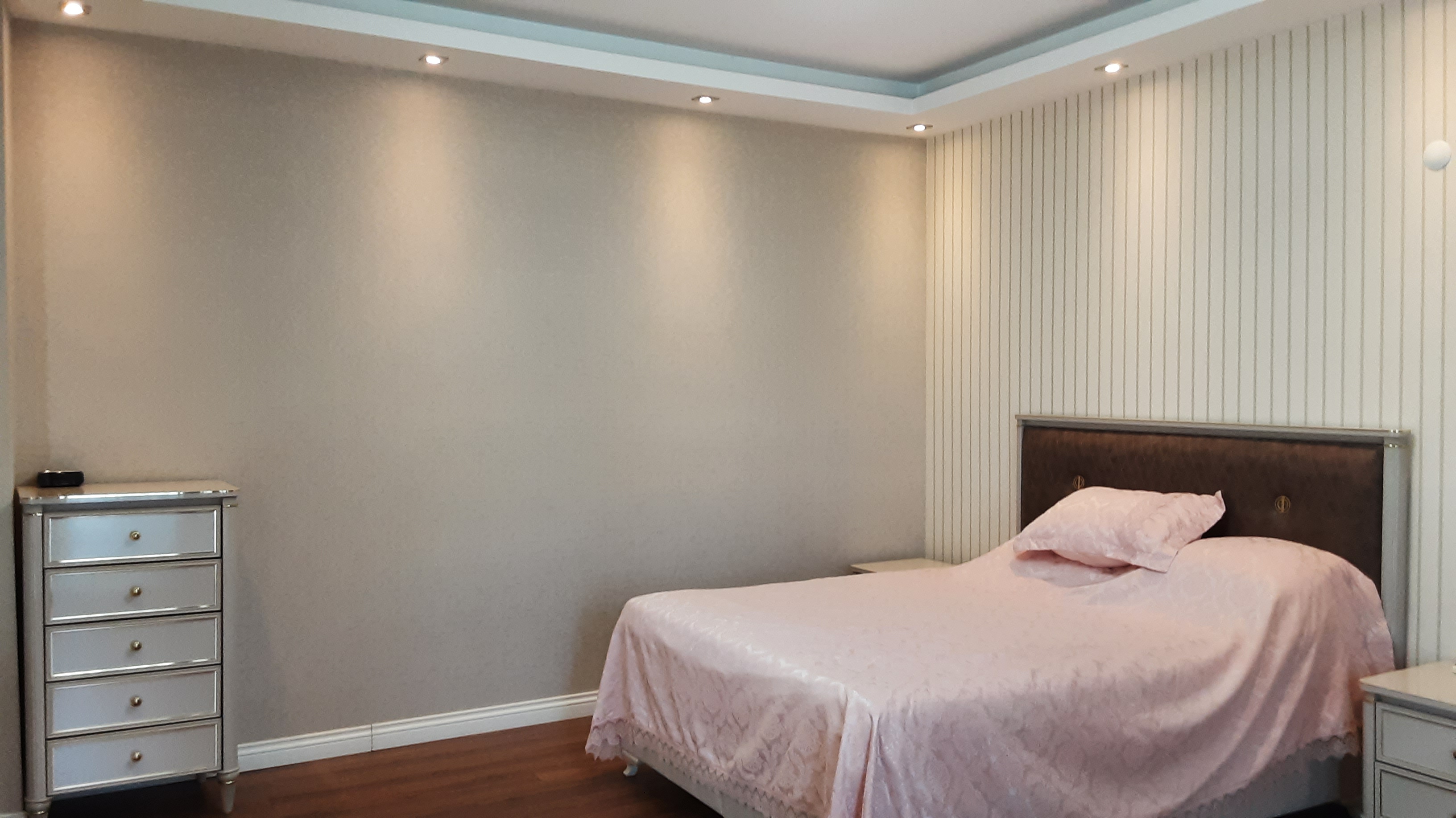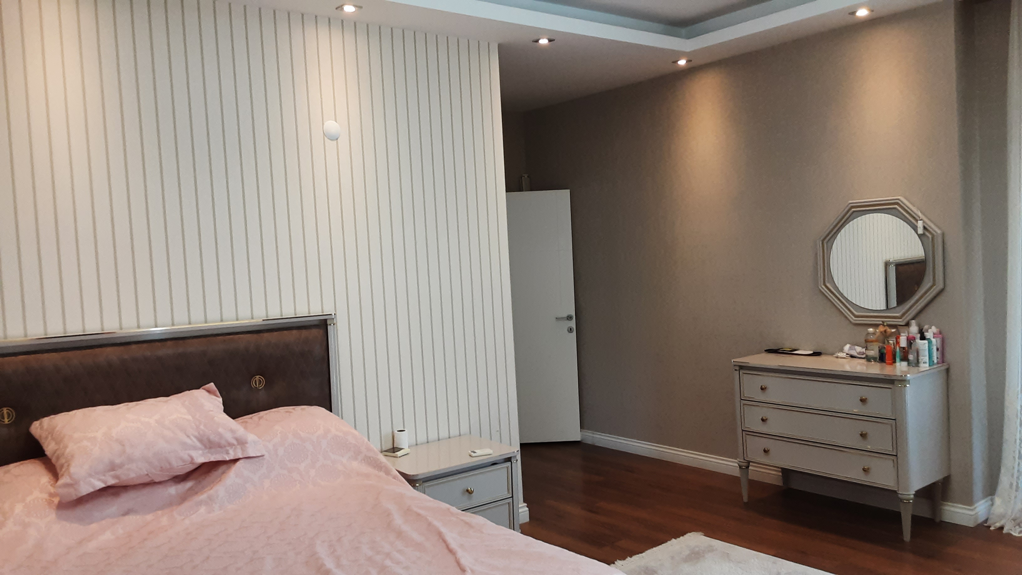 • دیوارها با کاغذ دیواری پوشانده شده اند