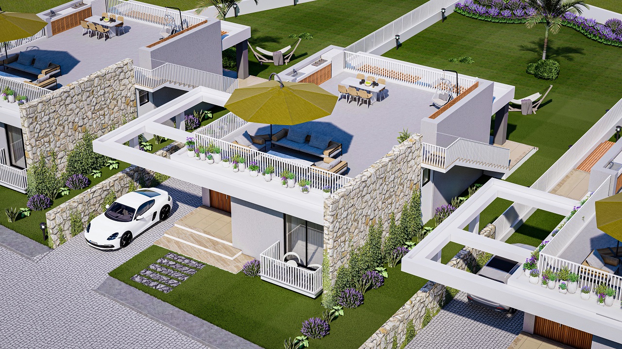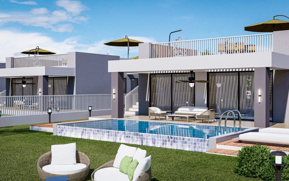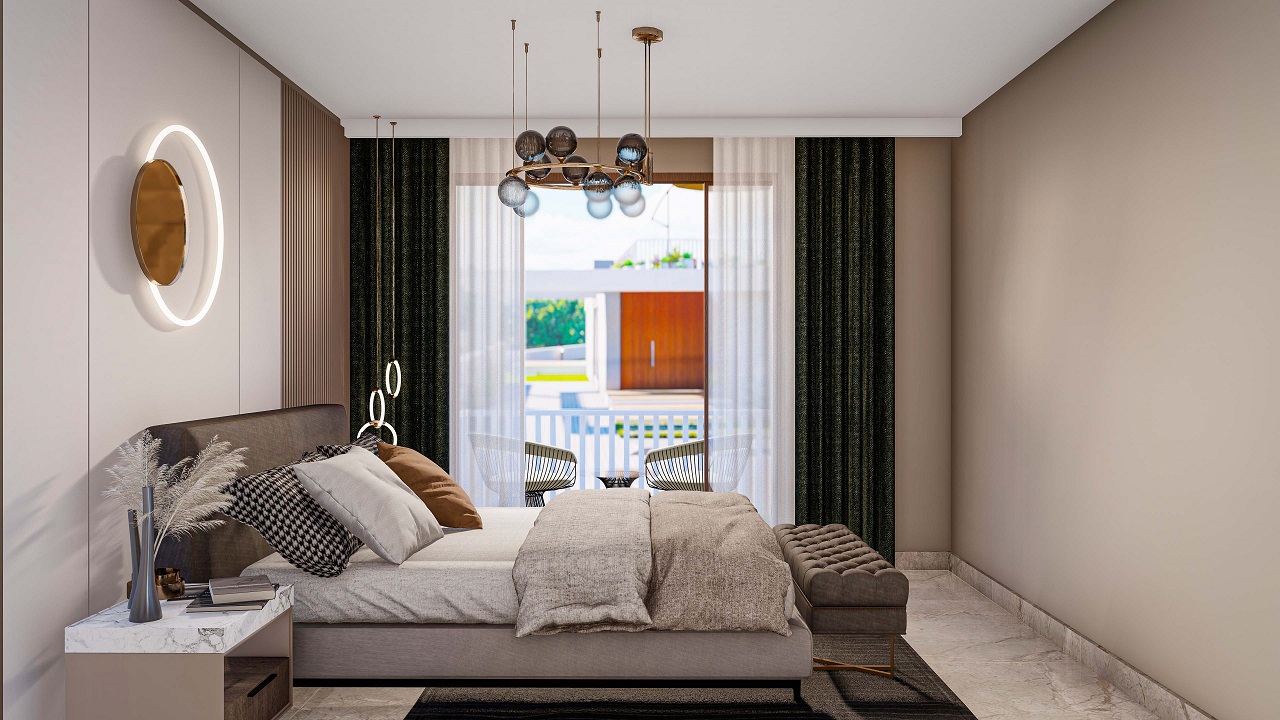 زمین خصوصی ۴۸۱ متر مربع. آشپزخانه باز با مبلمان داخلی. استخر شخصی باز.