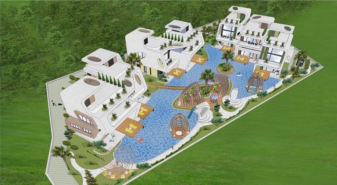 - استخر باز، قطعه زمین خصوصی 438 مترمربع