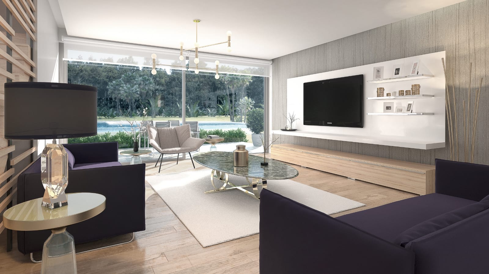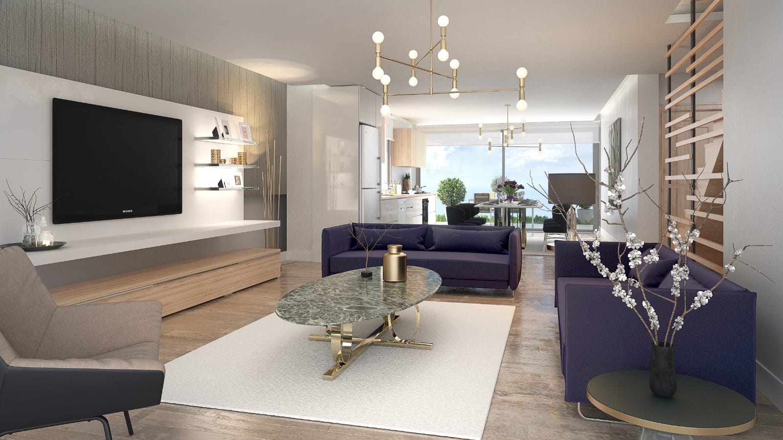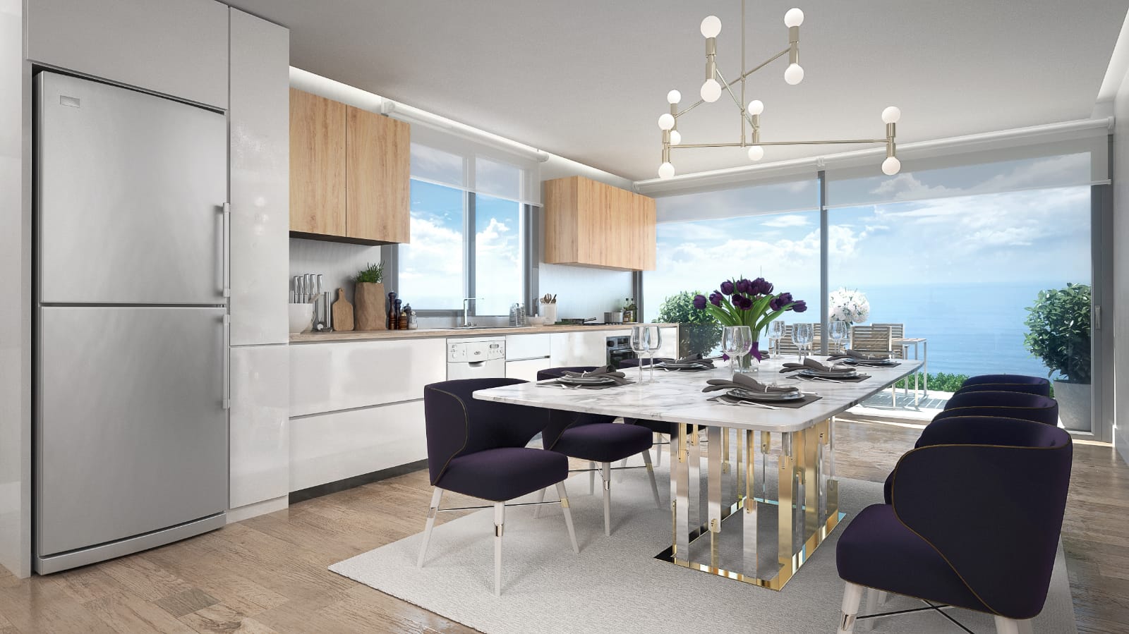 • آشپزخانه باز با مبلمان داخلی