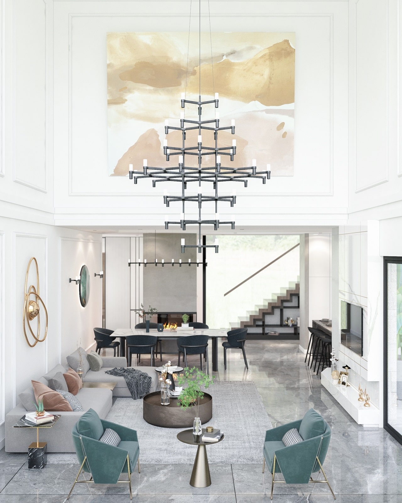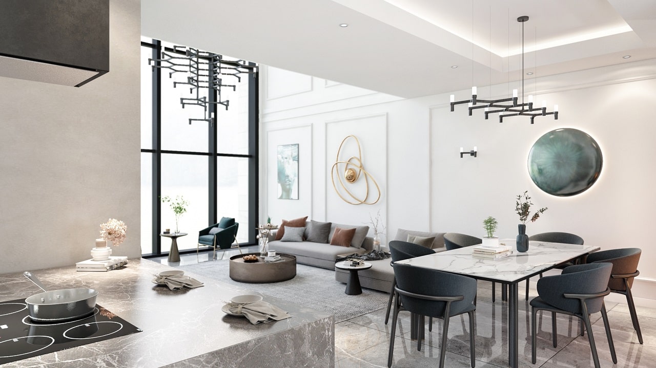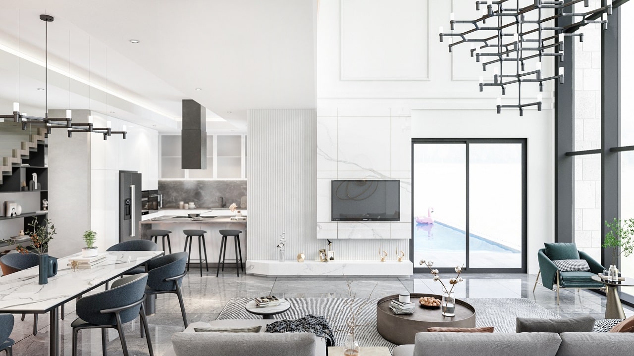 - آشپزخانه اوپن با مبلمان توکار